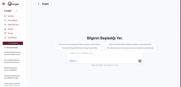 Hukuk departmanlarının ve hukuk bürolarının doküman analizi, sözleşme taslağı oluşturma, mevzuat ve içtihat araştırması yapma süreçlerini hızlı ve verimli bir biçimde yürütebilmesine olanak tanıyan platformuyla Leagle, doğal dil işleme (NLP) ve yapay zeka algoritmalarıyla tüm bu süreçleri otomatikleştirerek zaman alan ve tekrarlayan iş süreçlerinin otomatikleştirilmesini sağlıyor.
